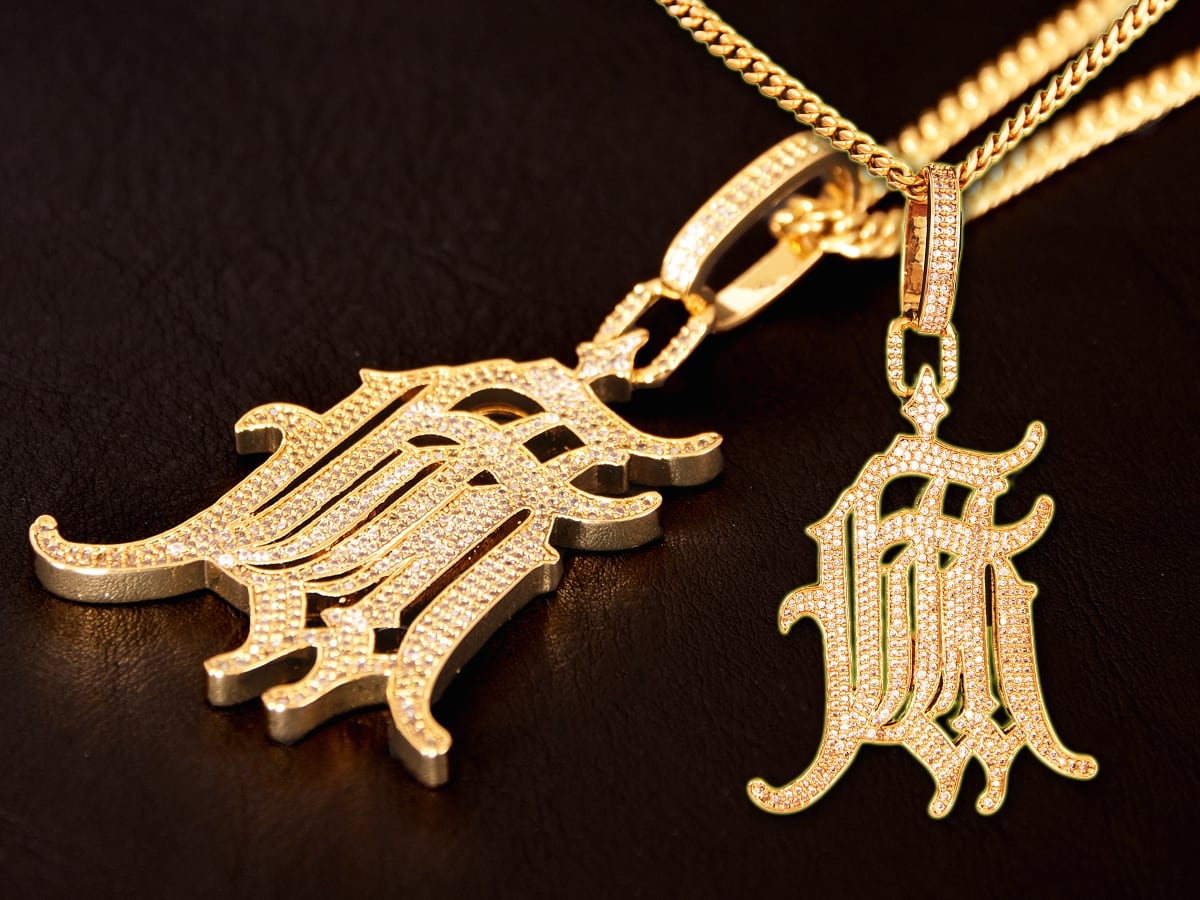K18GP 麻 ブラックレター パヴェ ネックレス (キューバンチェーン付き:サイズ 4mm*55cm)金ネックレス