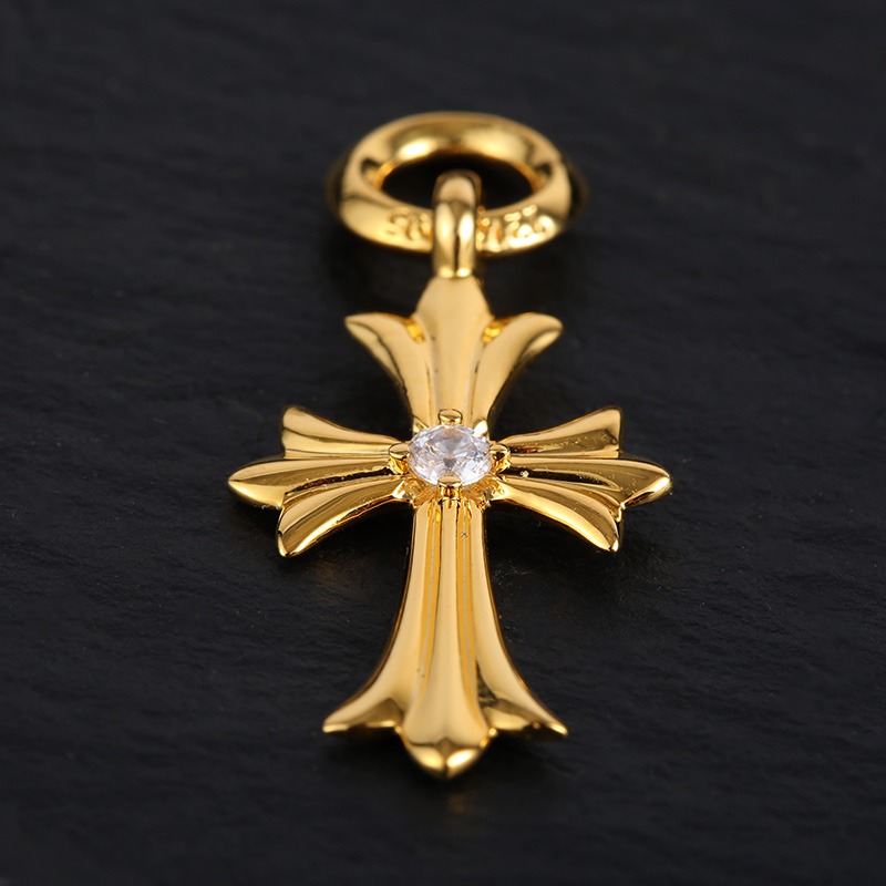 以前より当店で販売させて頂いておりますパヴェストーンのタイニークロスとは違い、センターに一つストーンを留めたシンプルなデザイン。
