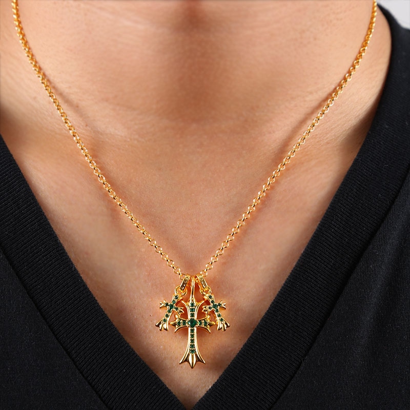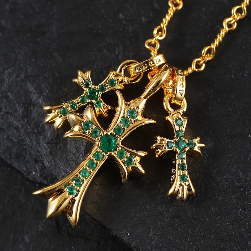 22KGP タイニークロス ファットペンダント エメラルドカラー
