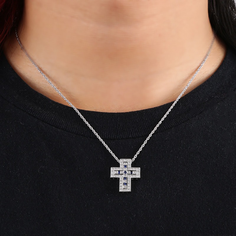 中のクロスには涼しげなサファイアカラーのストーンをセットしてあります。